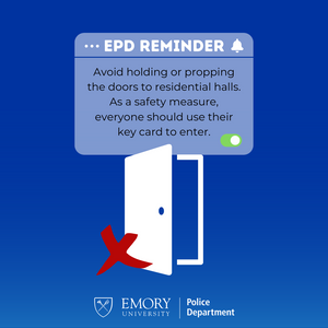 Various graphics created for Emory Police Department's social media page to spread safety awareness and promote community support.